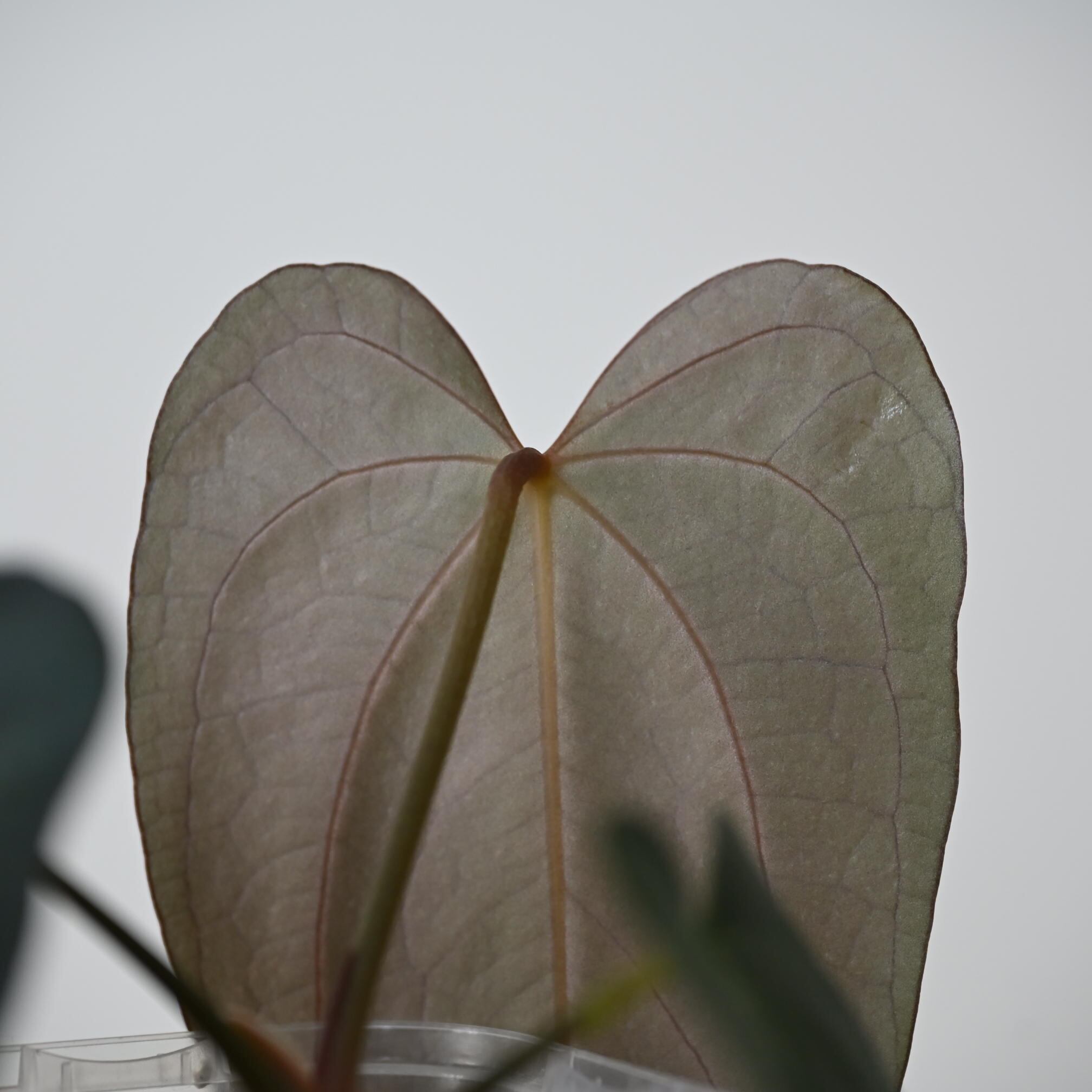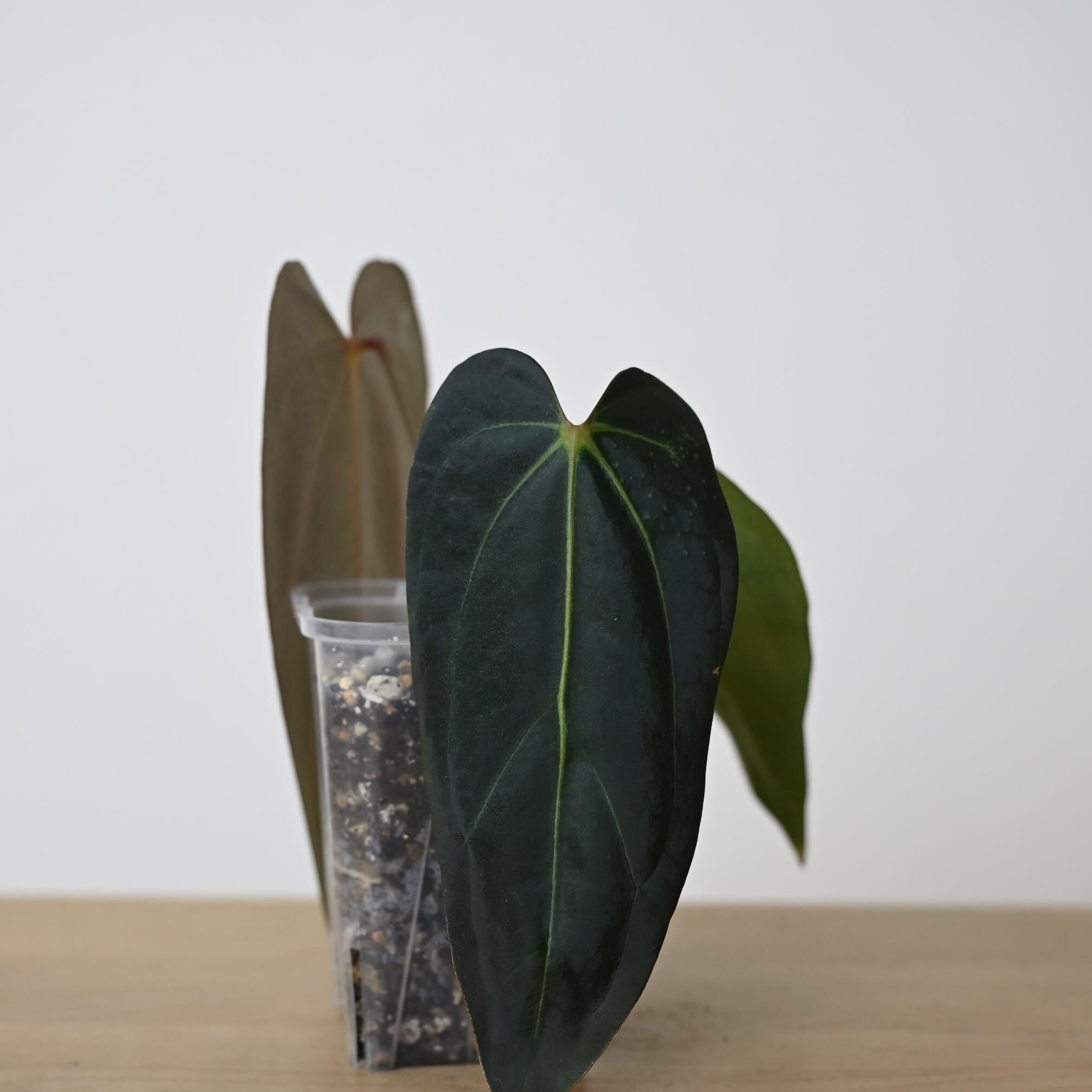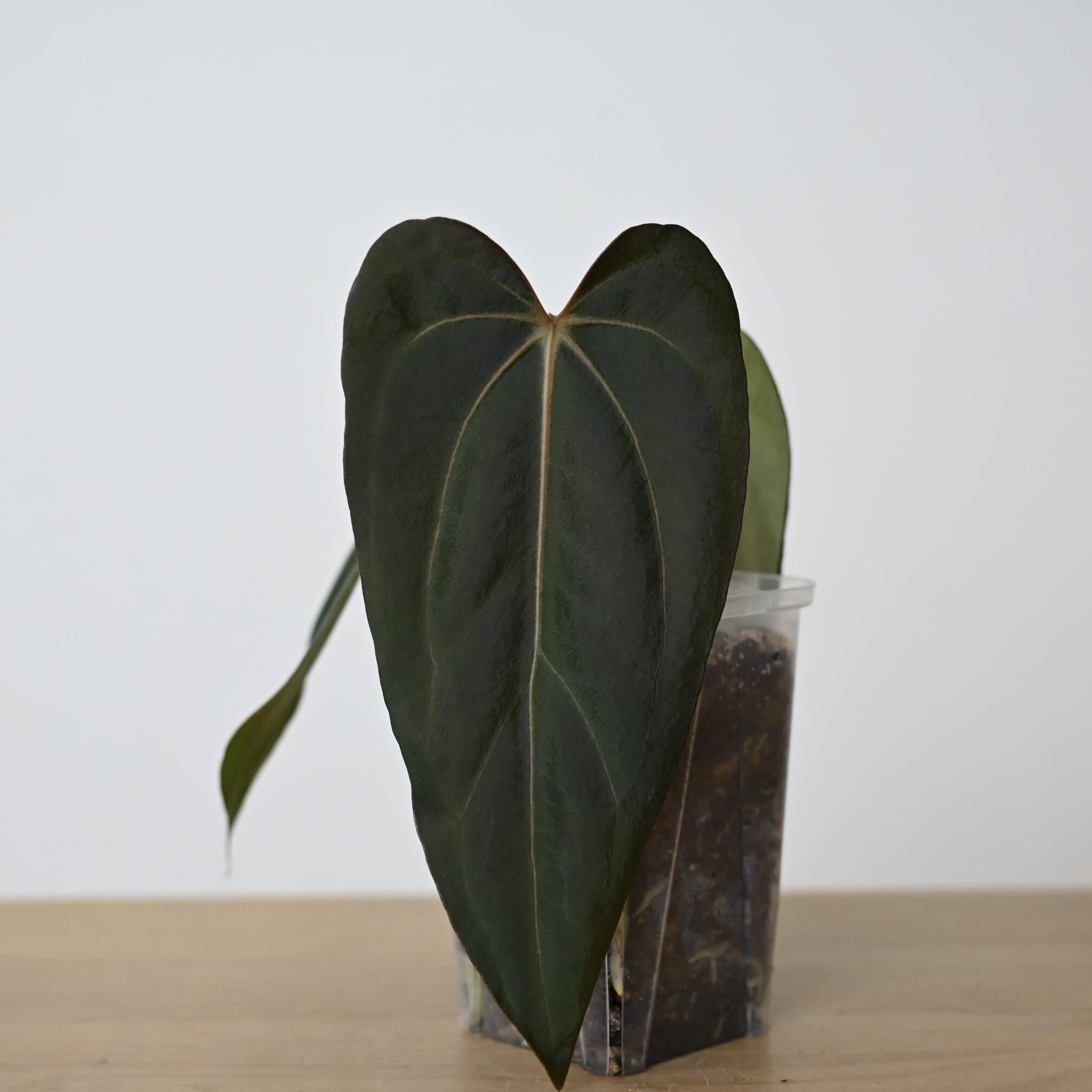 葉の上部(耳)が大きく開き独特かつ魅力的な形、深緑で上品な光沢を放つテクスチャーのPortillaeに数ある株の中から選びに選び抜いた原種carlablackiaeを組み合わせたハイブリッドです。