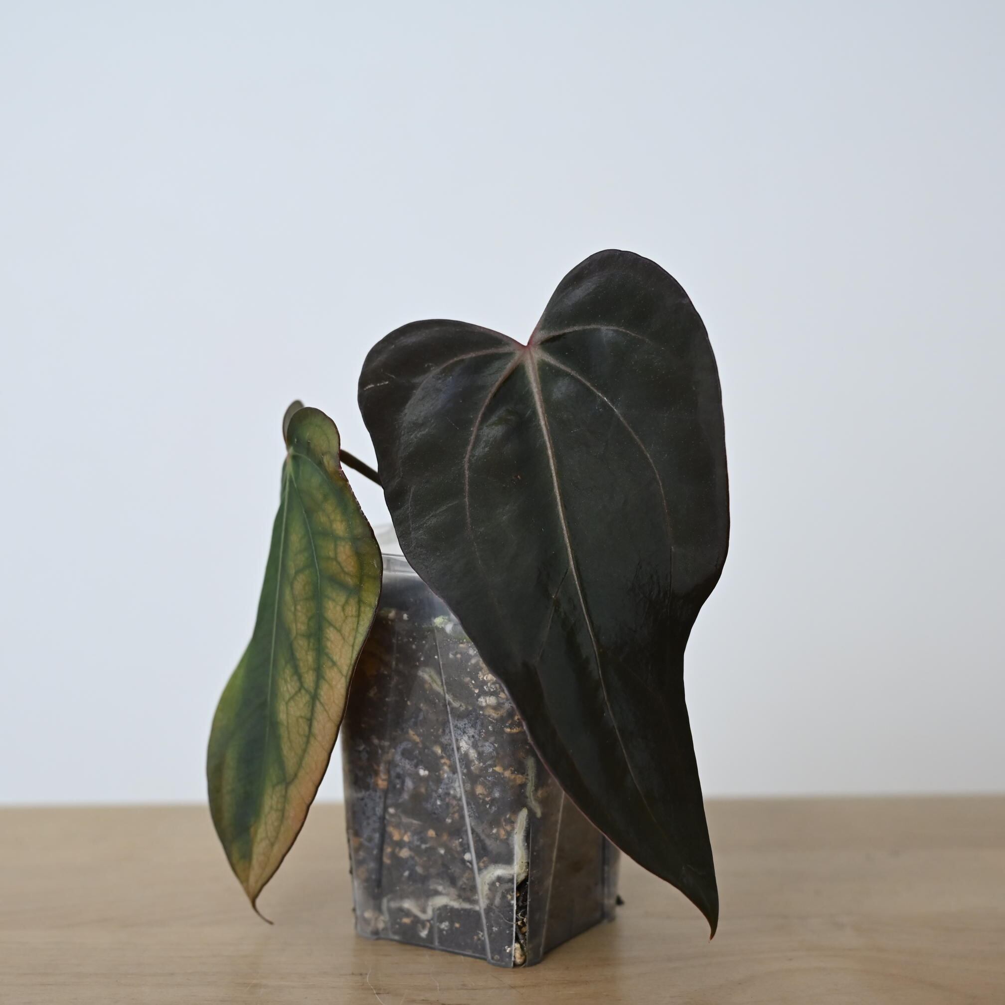 葉の上部(耳)が大きく開き独特かつ魅力的な形、深緑で上品な光沢を放つテクスチャーのPortillaeに数ある株の中から選びに選び抜いた原種carlablackiaeを組み合わせたハイブリッドです。