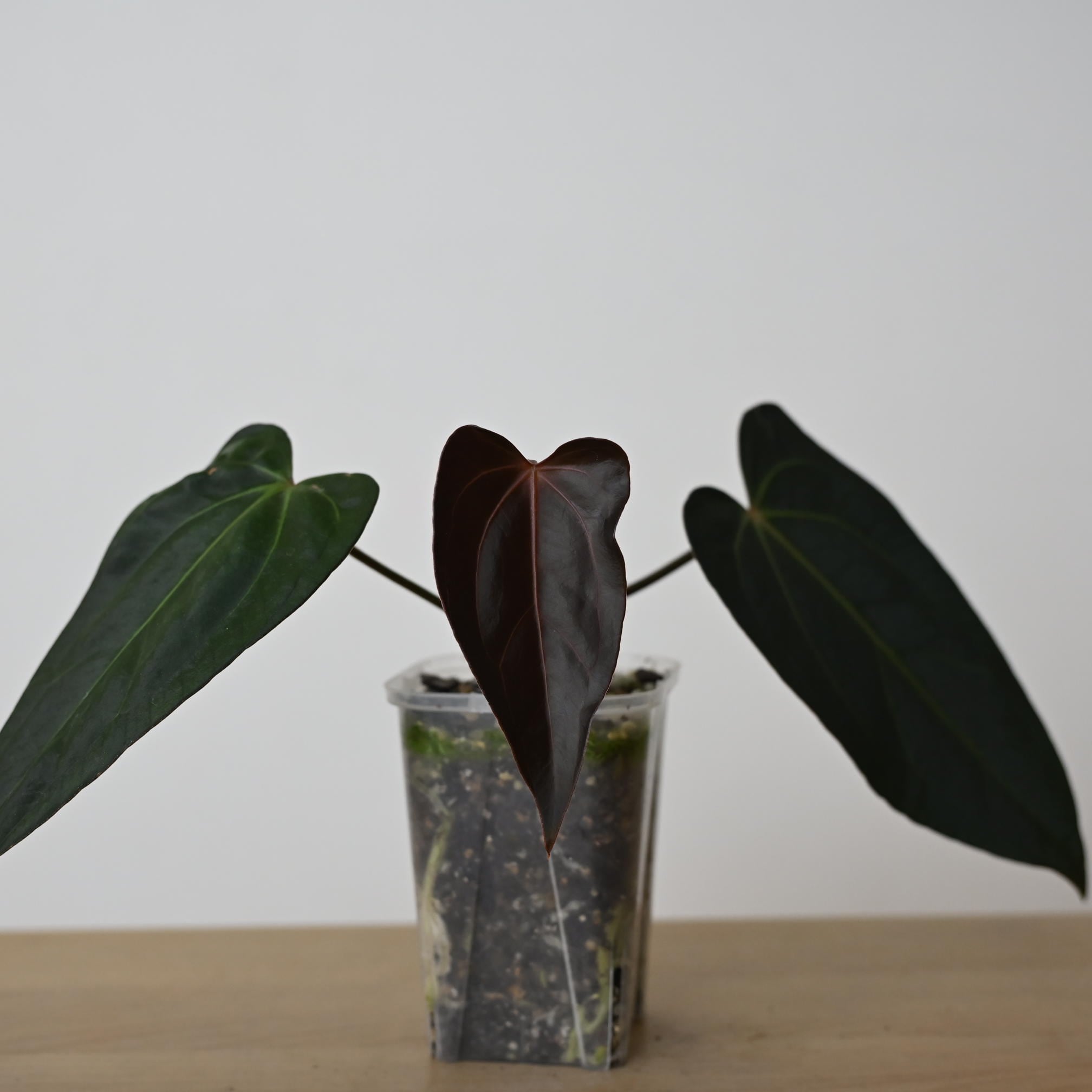 葉の上部(耳)が大きく開き独特かつ魅力的な形、深緑で上品な光沢を放つテクスチャーのPortillaeに数ある株の中から選びに選び抜いた原種carlablackiaeを組み合わせたハイブリッドです。