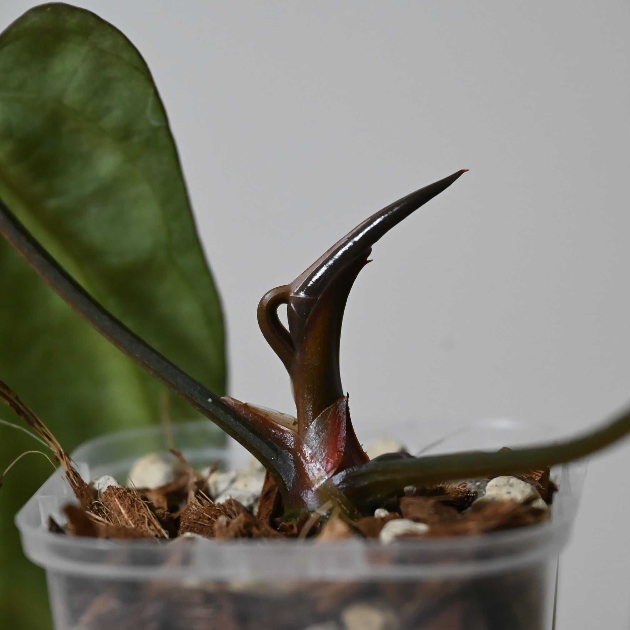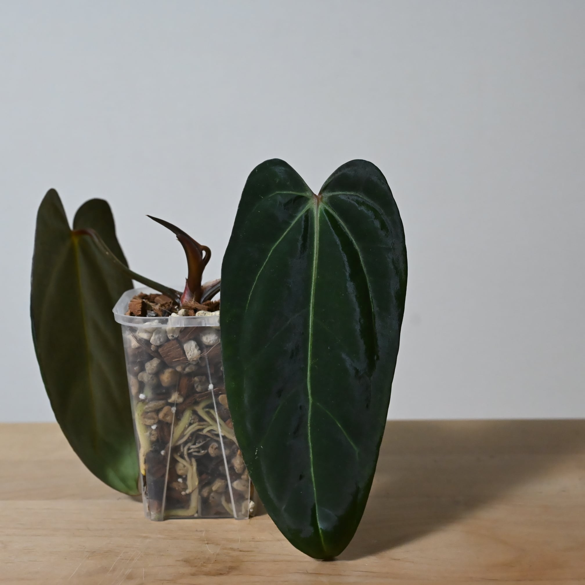 葉の上部(耳)が大きく開き独特かつ魅力的な形、深緑で上品な光沢を放つテクスチャーのPortillaeに数ある株の中から選びに選び抜いた原種carlablackiaeを組み合わせたハイブリッドです。