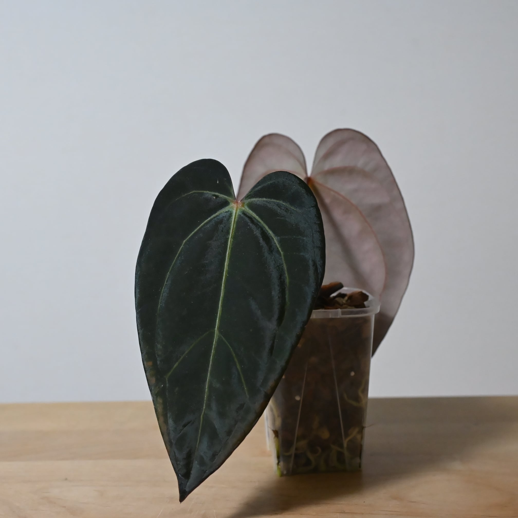 葉の上部(耳)が大きく開き独特かつ魅力的な形、深緑で上品な光沢を放つテクスチャーのPortillaeに数ある株の中から選びに選び抜いた原種carlablackiaeを組み合わせたハイブリッドです。