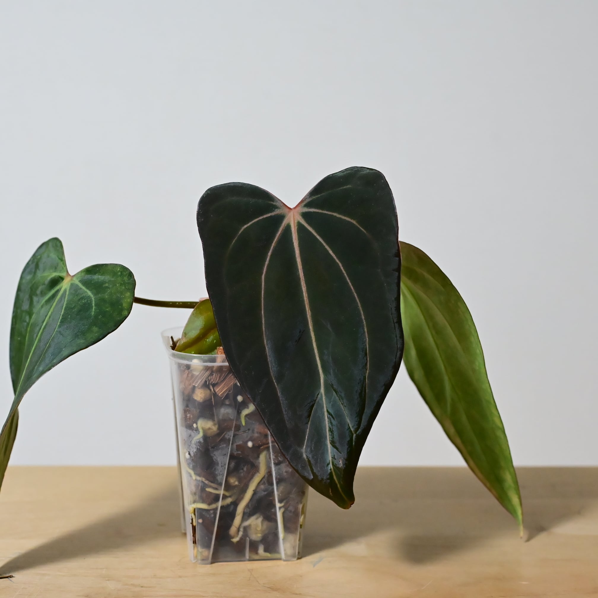 葉の上部(耳)が大きく開き独特かつ魅力的な形、深緑で上品な光沢を放つテクスチャーのPortillaeに数ある株の中から選びに選び抜いた原種carlablackiaeを組み合わせたハイブリッドです。
